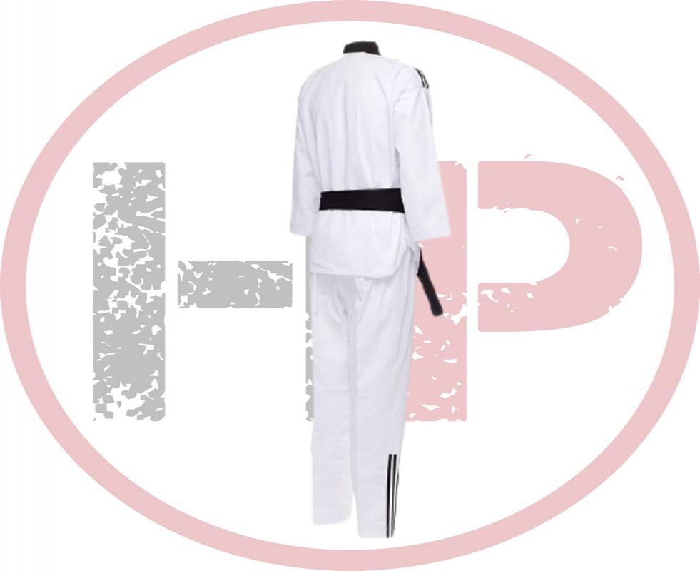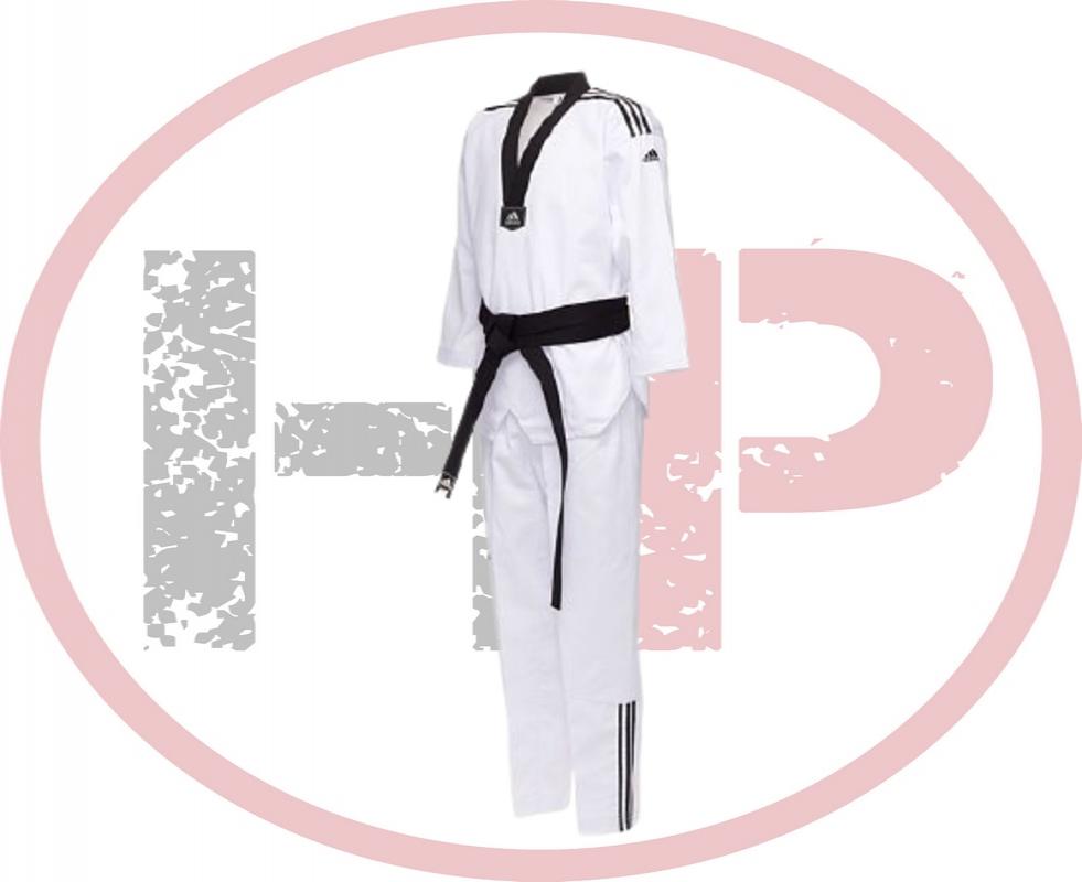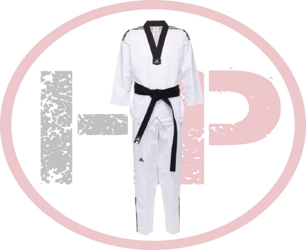 Добок для тхэквондо WTF Adi-Club 3. Идеальная модель кимоно, как для начинающих спортсменов, так и для профессионалов. Сделан из легкого, приятного на ощупь материала с рифленой структурой ткани, комбинации смеси полиэстера и хлопка, хлопковые волокна путем укрепления полиэфирными нитями увеличивает свою прочность на растяжение, и долговечность в использовании, а так же позволяет выводит наружу повышенную влажность, материал с трехмерной структурой обеспечивает хорошую микровентиляцию, впитывает пот и выводит его на поверхность ткани для дальнейшего быстрого испарения. Сохраняя комфорт во время тренировок. Модель состоит из лонгслива и брюк. Детали: V-вырез, разрезы по бокам с эластичными завязками, три полосы adidas на плечах; брюки на резинке+кулиска и 3 полосы adidas по бокам. Материал: 65% полиэстер 35% хлопок