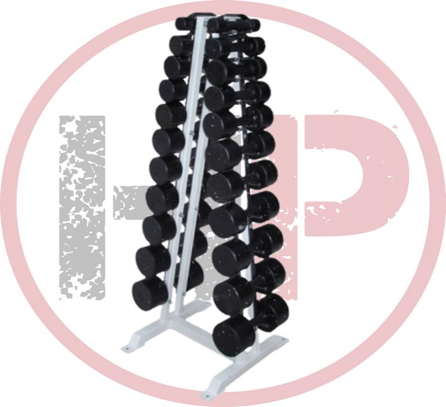 Гантельный ряд состоит из 10-ти пар гантелей с полимерным покрытием расположенных на компактном Л-образном стеллаже.