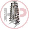 Гантельный ряд состоит из 8-ми пар хромированных гантелей: 2 гантели по 2.5 кг, 2*5, 2*7.5, 2*10, 2*12.5, 2*15, 2*17.5, 2*20кг расположенных на Л-образном стеллаже.